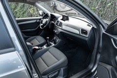 Szary lakier pięknie podkreśla przetłoczenia nadwozia i charakterystyczną linię Q3. Bi-xenony z LED-owymi światłami do jazdy dziennej nadają spojrzeniu auta ostrości, a nocą robią różnicę – widzisz więcej, wcześniej i wyraźniej. Do tego aluminiowe felgi, które domykają sportowo-elegancki look. Wygląd? Dyskretny prestiż. Taki, który nie musi krzyczeć, żeby robić wrażenie.
