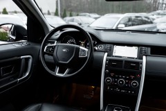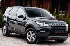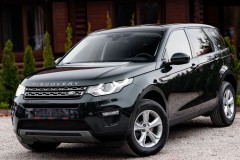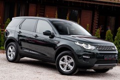 Land Rover Discovery Sport w pięknym, głębokim butelkowym zielonym — auto, które wygląda dobrze nawet stojąc na parkingu między kontenerami. 2.0 turbo, 240 koni pod maską, 4x4, skórzana tapicerka, xenony/LED — gotowy do wypatroszenia weekendowych przygód i codziennego podbijania miasta.