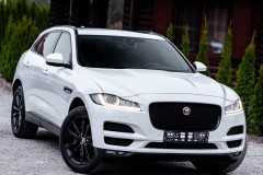 Jaguar F-PACE 2.0 D 240 KM AWD, Prestige, 2017 — biały, zadbany, przebieg 128 000 km, automatyczna skrzynia, panoramiczny dach, elektryczna klapa, czarne felgi, skórzana tapicerka, podgrzewane fotele przód/tył, podgrzewana kierownica, nawigacja, kamera, czujniki martwego pola, asysty, klimatyzacja dwustrefowa. Auto świeżo sprowadzone ze Szwajcarii, w pełni opłacone; koszt rejestracji 150 zł; wystawiamy fakturę VAT-marża (kupujący zwolniony z opłaty skarbowej). Możliwość gwarancji, transportu i pełnego wsparcia finansowego.